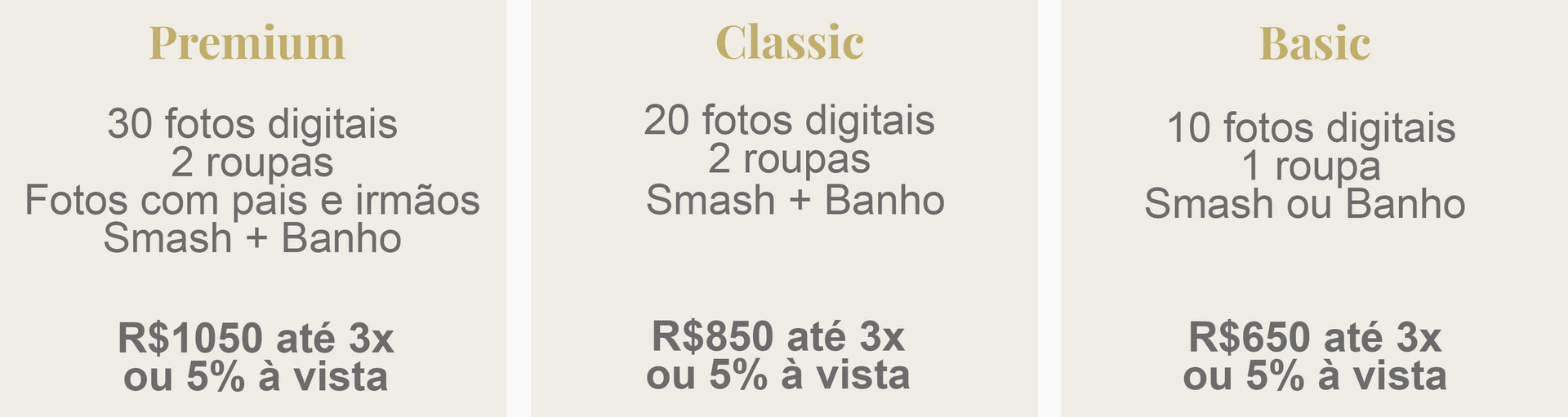 - Para agendamento da sessão, será cobrado a primeira parcela, através de transferência bancária, referente a reserva da data. Se for à vista o valor total.